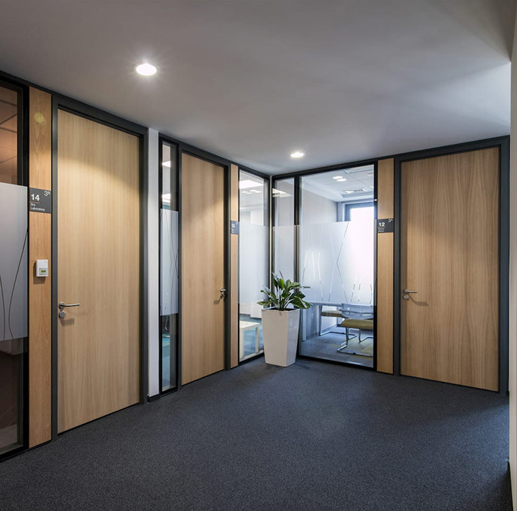 1)Flexibel oppervlakteontwerp: scheidingswanden bieden een breed scala aan ontwerpen. Kies uit helder, geglazuurd, gevlekt, PDLC of getint glas voor transparantie of privacy.Opties voor massieve panelen van melamine of staal in een breed scala aan kleuren en texturen.